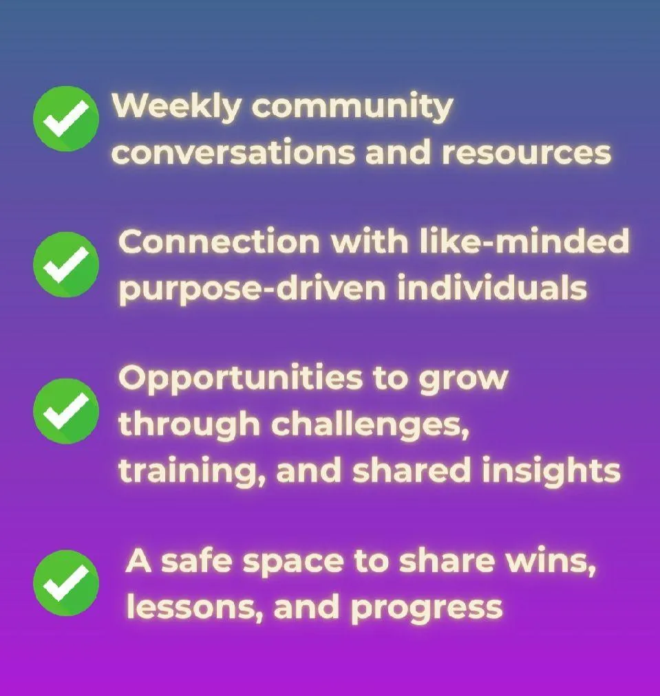 This space is for people who feel called to more. More purpose, more impact, more alignment. Whether you are an entrepreneur, leader, coach, creative, or someone on a personal growth journey, you belong here if you lead with heart and intention.